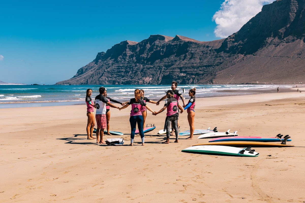 Lanzasurf hat seinen Sitz in Famara, einer entspannten Küstenstadt mit zuverlässigen Wellen, ideal für Anfänger und Fortgeschrittene. Die Instruktoren passen sich oft an, indem sie die Gäste zu anderen lokalen Stränden bringen, wenn die Bedingungen variieren, um die Surfzeit und den Spaß zu maximieren.